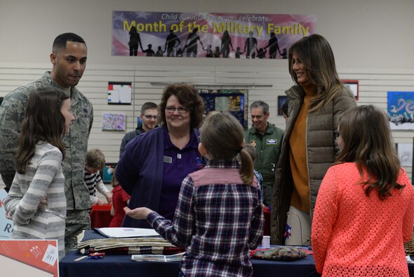 First Lady Melania Trump visits Joint Base Elmendorf-Richardson, Alaska, Nov. 10, 2017. The First Lady was returning from a Pacific Theater tour she attended with President Donald Trump. She attended the Month of the Military Family Celebration event held at the Arctic Oasis.