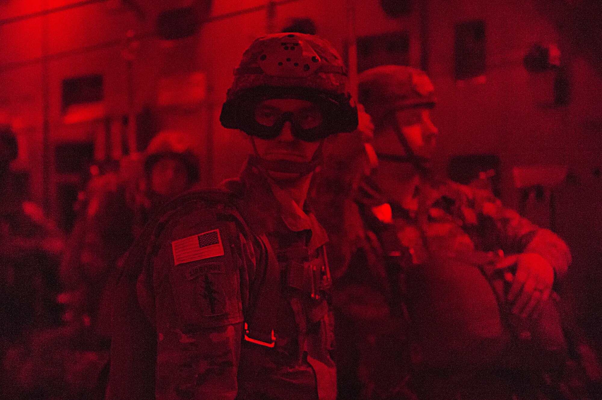 JOINT BASE ELMENDORF-RICHARDSON, Alaska -- Airmen and Soldiers participate in a training mission at Joint Base Elmendorf-Richardson, Alaska, April 18, 2017. The training involved an air refueling mission, a cargo drop and a night jump for paratroopers with the 4th Infantry Brigade Combat Team (Airborne), 25th Infantry Division, U.S. Army Alaska.