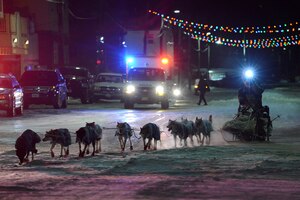 Rick Casillo, Battle Dogs founder and Iditarod Trail Sled Dog Race veteran, finishes in 28th place at 9 days, 11 hours, 56 minutes, 40 seconds in Nome, Alaska, March 15, 2017. Casillo has been racing since 2004 and in 2012, he and his wife, Air Force Lt. Col. Jennifer Casillo, Alaska Air National