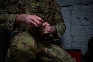 U.S. Air Force Senior Airman Dillon Moore, an air freight technician assigned to the 732nd Air Mobility Squadron, loads ammunition into a magazine before beginning a shooting qualification course at Joint Base Elmendorf-Richardson, Alaska, Jan. 28, 2025. Completing qualification courses is essential