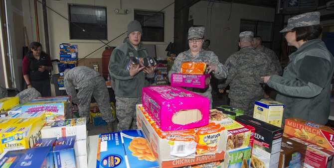 Airmen from the 301st and 381st intelligence squadrons had a friendly competition to raise the most canned food for to the Armed Services YMCA of Alaska food pantry program. The food pantry is a place for military members and their families to get food in times of need with no questions asked.
